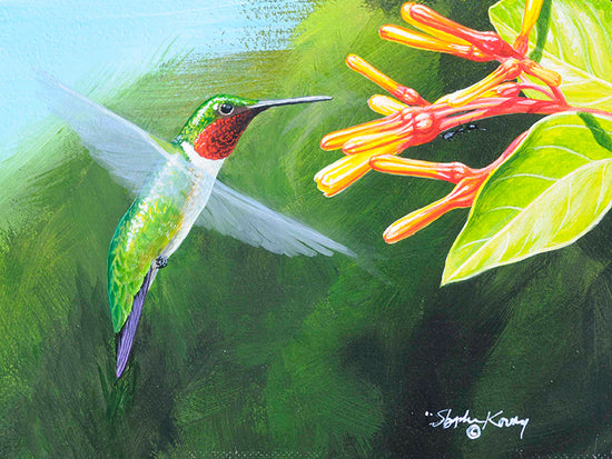 The artistic visions of Stephen Koury engage the viewer to be swept away into his world, the world of nature. He uses vivid colors and creates fabulous textures in the creatures and habitats he depicts. Stephen moves you to where you want to be in nature, stimulating your senses. one can feel the breath, hear the call, and see the perfect imperfections that make life unique.