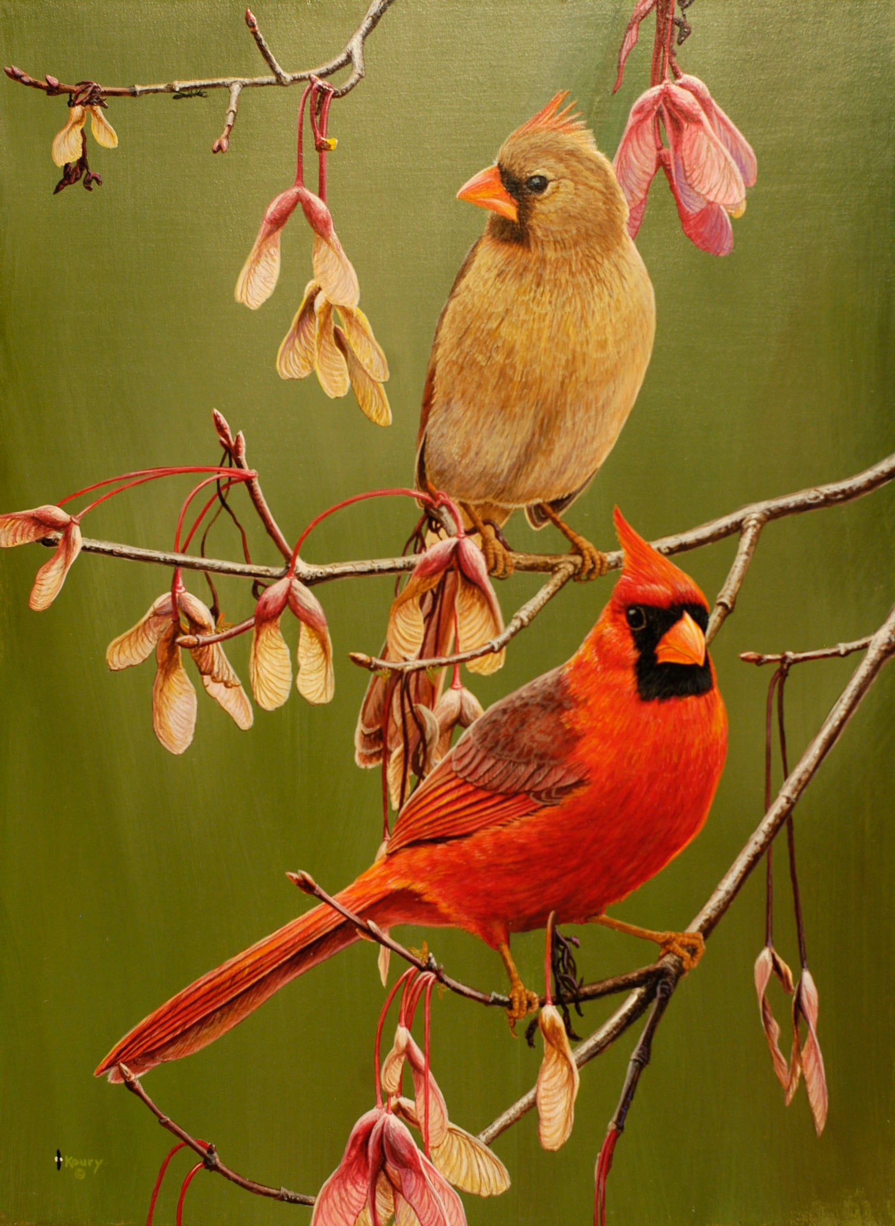 Cardinals in Maple note cards 5 pack