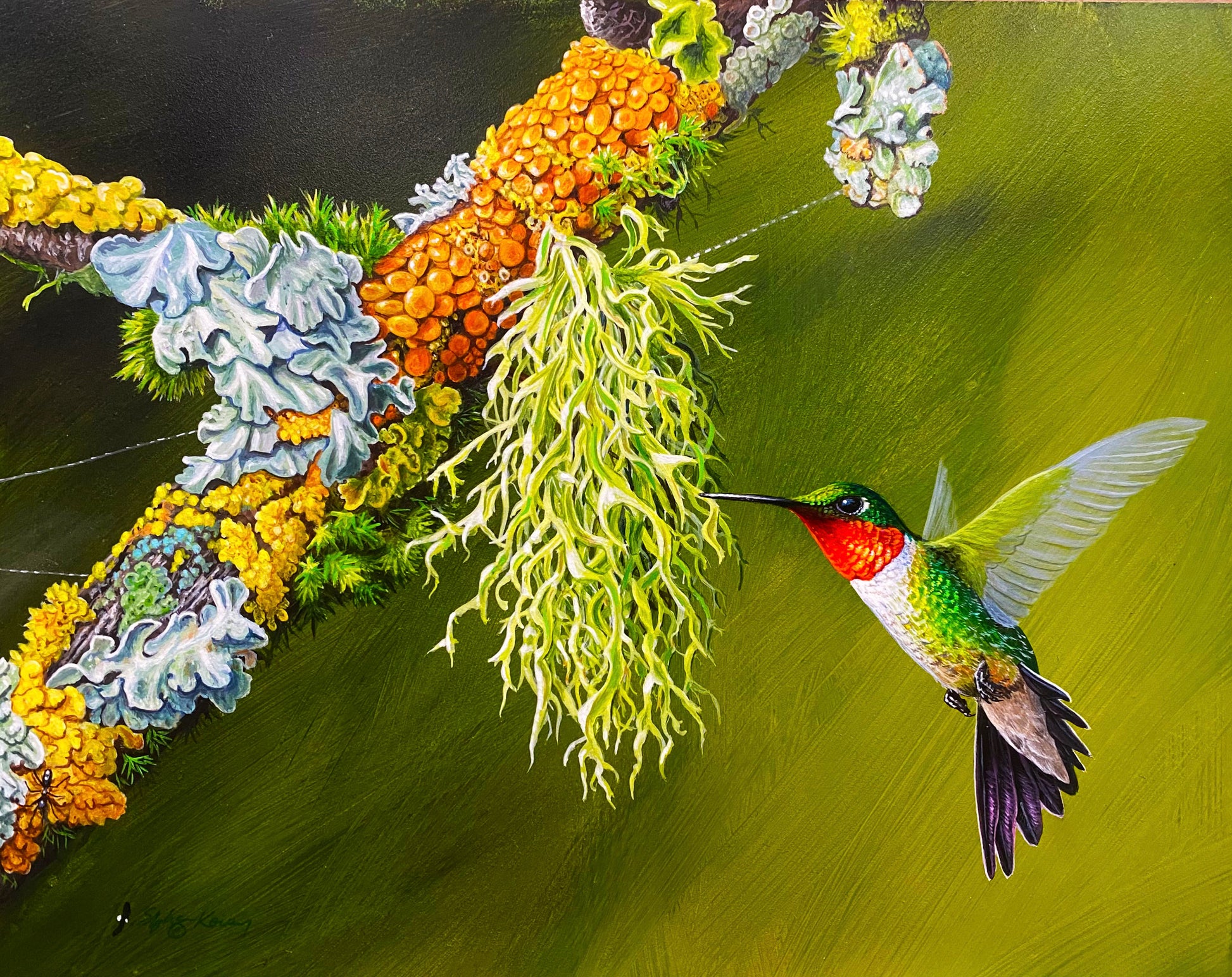 These beautiful 5.5"x 4.25" note cards feature a Ruby Throated Hummingbird and Lichen and comes in a 5 pack with mailing envelopes and a clear outside envelope on each of the individual cards. The cards open to a blank interior ready for you to write your own personal message, or they can be a wonderful gift individually or as a five pack. Each card is personally signed by Stephen on the front.